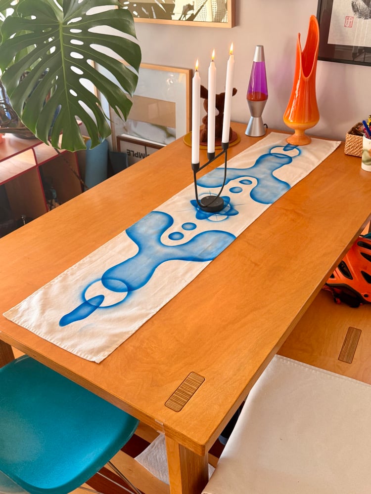 can be hung on the wall or used as a table runner